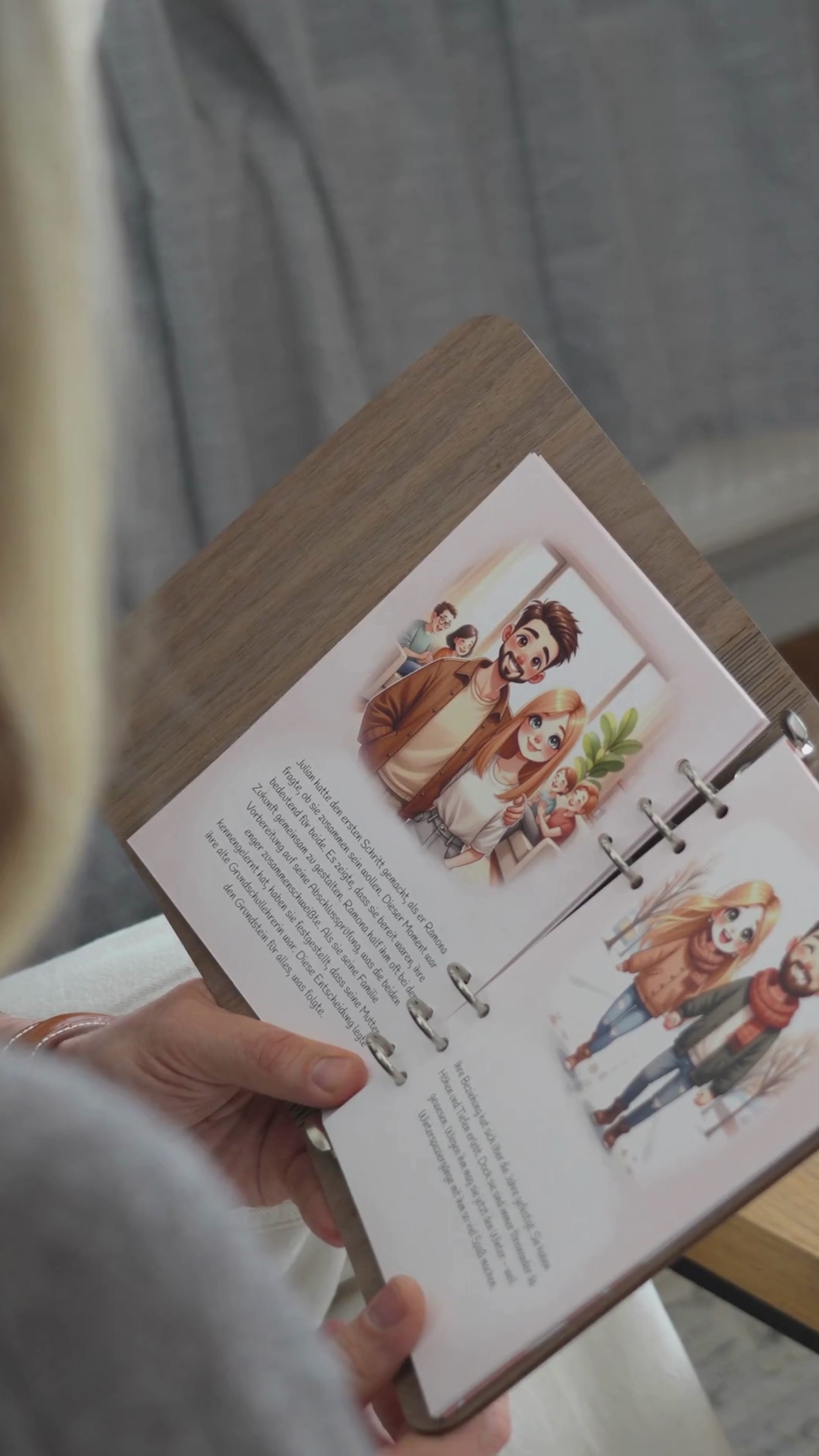Du wählst die Geschichte, erzählst von gemeinsamen Momenten, fügst eigene Bilder hinzu (die wir in liebevolle Illustrationen verwandeln) und schreibst Texte, die wirklich von dir kommen. So wird aus einem einfachen Geschenk ein persönliches Erlebnis, das zeigt: „Ich hab mir wirklich Gedanken gemacht.“